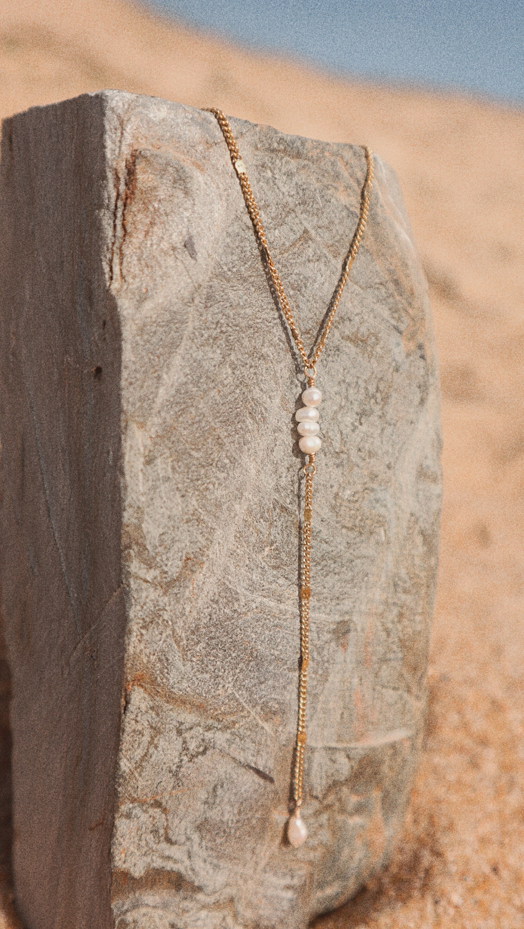 - Collier Vaea en acier inoxydable et apprêts gold filled 14 carats, sublimé par des perles d'eau douce.